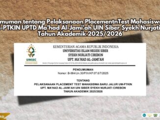 Pengumuman tentang Pelaksanaan PlacementnTest Mahasiswa Baru Jalur UM-PTKIN UPTD Ma’had Al-Jami’ah UIN Siber Syekh Nurjati Cirebon Tahun Akademik 2025/2026