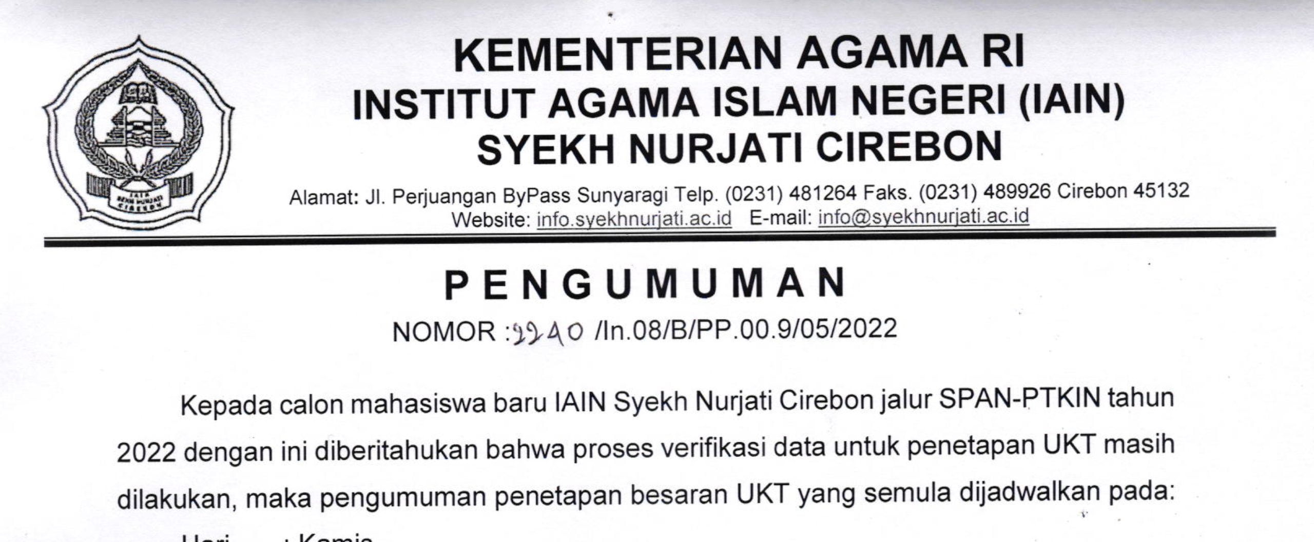 18 May 2022 • PENGUMUMAN PELAKSANAAN WISUDA KE XXIV IAIN SYEKH NURJATI CIREBON TAHUN 2022 PENGUMUMAN PELAKSANAAN WISUDA KE 24 TAHUN 2022 Pengumuman
