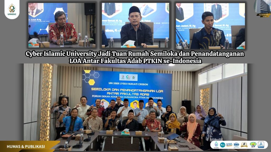 UIN Siber Cirebon — Fakultas Ushuluddin dan Adab (FUA) Universitas Islam Negeri (UIN) Siber Syekh Nurjati Cirebon, juga dikenal sebagai Cyber Islamic University (CIU), menjadi tuan rumah kegiatan Semiloka dan Penandatanganan Letter of Agreement (LOA) antar Fakultas Adab dari Perguruan Tinggi Keagamaan Islam Negeri (PTKIN) se-Indonesia. Acara yang diinisiasi oleh Forum Dekan Adab dan Humaniora PTKIN se-Indonesia ini digelar di Gedung SBSN Siber, lantai 7, dan dihadiri perwakilan dari berbagai UIN terkemuka di Indonesia, seperti UIN Syarif Hidayatullah Jakarta, UIN Makassar, UIN Imam Bonjol Padang, UIN Raden Fatah Palembang, UIN Jambi, UIN Malang, UIN Purwokerto, UIN Saifuddin Zuhri Pekalongan, UIN Bandung, dan UIN Surabaya. Senin, (05/11/2024).