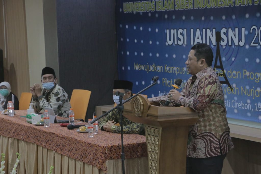 Cirebon (Kemenag). Rektor IAIN Syekh Nurjati Cirebon Sumanta Hasyim yang mendampingi Dirjen Pendidikan Islam dan Direktur Diktis menyatakan kesiapan dan optimisnya. Doktor jebolan UIN Syarif Hidayatullah juga mengatakan, bahwa apa yang diharapkan oleh Kemenag tersebut sejalan dengan proses transformasi kelembagaan yang saat ini telah diajukan oleh IAIN Syekh Nurjati Cirebon. Kehadiran Universitas Islam Siber Syekh Nurjati Indonesia (UISSI) menjadi penguat transformasi kelembagaai IAIN Syekh Nurjati Cirebon dalam waktu dekat.