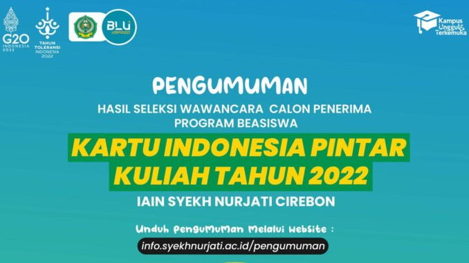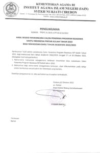 Pengumuman Calon Penerima Beasiswa KIP Kuliah IAIN Cirebon Tahun 2022 27 Oktober 2022 arifin Berita 0 Download Link Pengumuman Dibawah : 4424_PENGUMUMAN HASIL SELEKSI WAWANCARA CALON PENERIMA BEASISWA KIP 2022