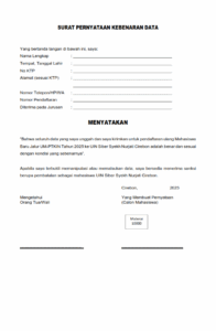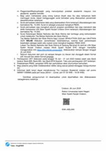 Daftar Ulang Calon Mahasiswa Baru UIN Siber Syekh Nurjati Cirebon Jalur UM-PTKIN 2025 30 Juni 2025 arifin Informasi, Pengumuman 0 Download : surat_pernyataan_kebenaran_data_jalur_um_ptkin_2025 surat_pernyataan_siap_mengikuti_pembelajaran_jalur_um_ptkin_2025 Tata Cara Pembayaran Pendaftaran SPMB UM-PTKIN 2025 #1ThAnnivesaryUINSSC#Akreditasiunggul2025#asean.##AspireInstitute#astaprotas#australia#BankBI#BankBIKotaCirebon#BankBRI#BAZNASKotaCirebon#BAZNASRI#Bersamakitabisa#BKIUINSSC#China#ciu#cybersynergy#direktoratjenderalpendidikantinggikemenagri#FasyaUINSiberCirebon#FDKIUINSiberCirebon#FEBIUINSiberCirebon#filipina#FITKUINSiberCirebon#FUAUINSiberCirebon#HalalInstitue#Harkitnas2025#CyberIslamicUniversity#BangkitBersama#IndonesiaKuat#HarvardBusinessSchool#HarvardUniversity#HumasUINSiberCirebon#Ikhlasdarihatiberamaljangannanti#InspektoratJenderalKemenagRI#Internasionalofficeandpatnershipuinsibercirebon#Jepang#JULAEHAUINSSC#kemenagberdampak#KementerianAgamari#KPPPratamaCirebonsatu#LAMDIK#LAMEMBA#LayananAkademikUINSiberCirebon#LayananKepegawaianUINSiberCirebon#LPHUINSiberCirebon#LPMUINSiberCirebon#LPPMUINSiberCirebon#Ma’haduinsibercirebon#MahasiswaAsingUINSiberCirebon#malaysia#menteriagama#Mesir#P2BUINSiberCirebon#PascasarjanaUINSiberCirebon#PemerintahKabupatenCirebon#PemerintahKotaCirebon#PemkabCirebon#PIPDUINSiberCirebon#PKBHUINSiberCirebon#PkMUINSiberCirebon#PMIUINSSC#PPBUINSiberCirebon#PPIDUINSiberCirebon#PSGADuinsibercirebon#PSU#PTIPDUINSiberCirebon#PTMuliaIntiPangan#PusbangkomKemenagRI#SDGs04#SDGs17#SKKNI#Songkhla#SPIUINSSC#Sudan#SustainableDevelopmentGoals(SDGs)#thailand#UIGreenmatric#uinssc#UINSSC_UnggulMendunia#UPZSyarifahMudaim#UPZUINSiberCirebon#UUMMalaysiabanptkepegawaianMoAmoupemkotcirebonspanptkinuinsibercirebonuinsscofficialumptkin