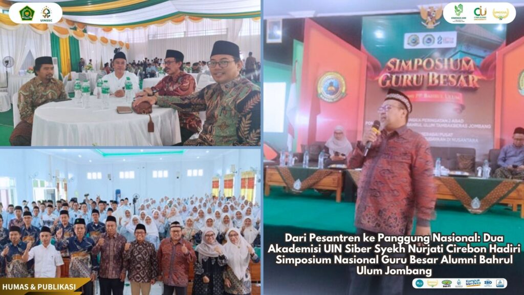 UIN Siber Cirebon (Jombang) — Dua akademisi Universitas Islam Negeri (UIN) Siber Syekh Nurjati Cirebon, Prof. Dr. Abdul Aziz, S.Ag., M.Ag., dan Dr. Iis Arifudin, M.Ag., turut ambil bagian dalam Simposium Nasional Guru Besar Alumni Pondok Pesantren Bahrul Ulum Jombang, sebuah forum ilmiah bergengsi yang mempertemukan para tokoh nasional dan akademisi berlatar pesantren.(16/10).