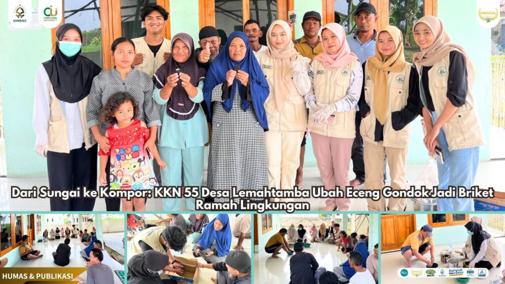 UIN Siber Cirebon (Lemahtamba) — Siapa sangka tanaman liar yang sering dianggap pengganggu, seperti eceng gondok, bisa menjadi solusi energi masa depan? Mahasiswa KKN Kelompok 55 UIN Sunan Gunung Djati Cirebon membuktikan hal itu lewat Workshop Pembuatan Briket Ramah Lingkungan dari Eceng Gondok, yang digelar di Desa Lemahtamba, Kabupaten Cirebon.(14/08).