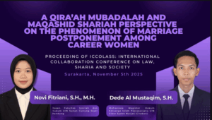 Sementara itu, Dede Al Mustaqim, S.H. menambahkan bahwa dalam bingkai Maqāṣid Syariah, penundaan pernikahan tidak dapat dipandang sebagai penyimpangan dari nilai-nilai Islam.