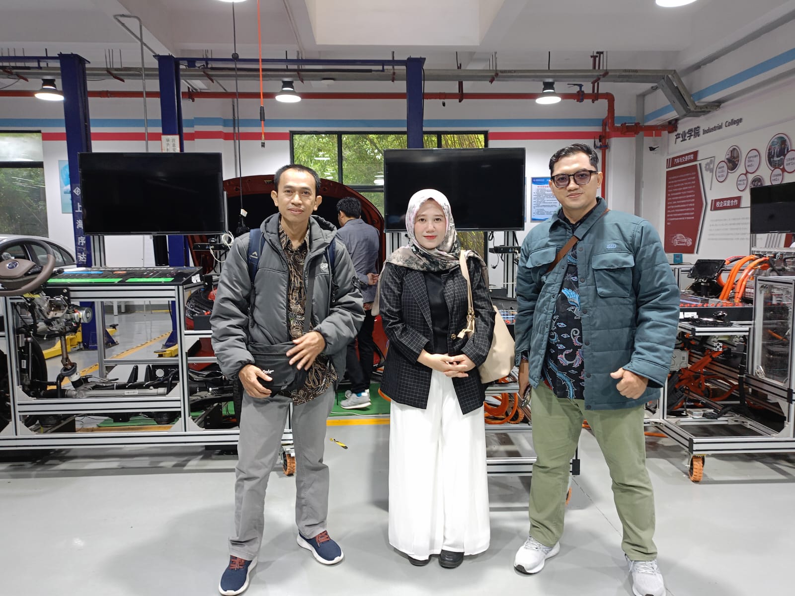 Selain itu, delegasi juga menyaksikan fasilitas Laboratorium Otomotif yang menjalin kerja sama dengan merek ternama dunia seperti Mercedes Benz dan BYD, menunjukkan komitmen Wuxi Institute dalam membekali mahasiswa dengan pengalaman industri langsung.