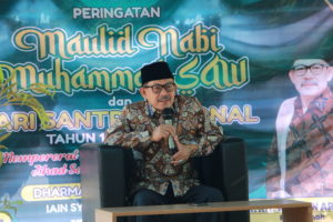 IAIN Cirebon – Rabu, 18 Oktober 2023, Dharma Wanita Persatuan IAIN Syekh Nurjati Cirebon merayakan peringatan Maulid Nabi Muhammad SAW dan Hari Santri Nasional 2023. Kegiatan Maulid Nabi kali ini digelar dihalaman rektorat bersama segenap sivitas akademika, yang dengan penuh semangat dan khidmat mengikuti kegiatan Maulid Nabi ini sampai berakhirnya acara. . Acara ini digagas oleh Dharma Wanita IAIN Syekh Nurjati Cirebon dan dengan menghadirkan penceramah terkemuka KH Wawan Arwani.