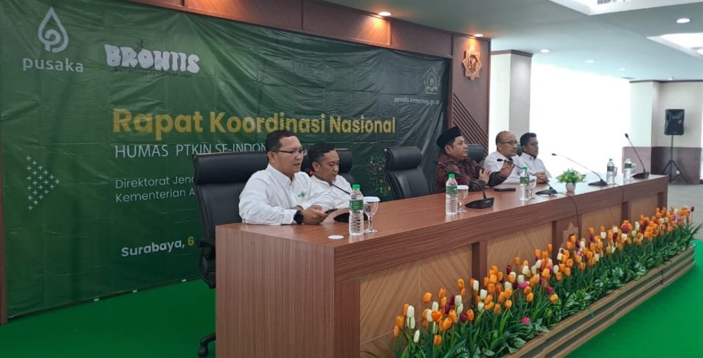 Prof. Muhammad Ali Ramdhani Dirjen Pendis menghimbau seluruh Humas agar cerdas dalam memgelola informasi, hal ini disampaikan pada Rapat Koordinasi Nasional Humas PTKIN se – Indonesia di UIN Sunan Ampel Surabaya. “sebagai humas dalam menyuguhkan berita harus pintar mengelola issu dan komunikasi kepada masyarakat serta informasi yang disampaikan juga harus jelas”. Kegiatan Rakornas ini di inisiasi oleh Humas Direktorat Jenderal Pendidikan Islam Kementerian Agama RI yang akan berlangsung pada tanggal 6 s.d 8 Februari 2023.
