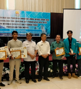 Puncak acara ditandai dengan penyerahan penghargaan oleh Bupati Cirebon, Drs. H. Imron Rosyadi, M.Ag. Dalam sambutannya, Bupati Imron menegaskan pentingnya inovasi dan riset dalam mendorong daya saing serta percepatan pembangunan daerah.