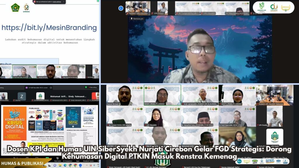 Kegiatan yang dilaksanakan secara daring ini menjadi ruang kolaborasi akademik lintas Perguruan Tinggi Keagamaan Islam Negeri (PTKIN) untuk merumuskan arah baru strategi komunikasi publik berbasis digital.