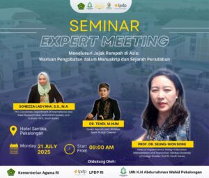 Kegiatan Seminar Expert Meeting ini merupakan bagian dari rangkaian program Mora the Air Funds yang didanai oleh Kementerian Agama RI dan Lembaga Pengelola Dana Pendidikan (LPDP) dilaksanakan di Hotel Santika Pekalongan pada Senin, 21 Juli 2025, dengan tim kolaborasi riset dari UIN Siber Syeh Nurjati Cirebon (UIN SSC) dan Universitas Islam Negeri K.H. Abdurrahman Wahid Pekalongan, yang terdiri dari Prof. Dr. H. Zaenal Mustakim, M.Ag, Fika Hidayani, M.Hum, Am’mar Abdullah Arfan, M.H, Hj. Isriani Hardini, Ph.D, Dr. Rahmat Kamal, M.Pd.I, serta Dicky Rachmat Pauji, M.Hum., Ph.D. Para peneliti ini secara aktif menggagas dan melaksanakan riset interdisipliner terhadap naskah-naskah kuno yang menyimpan pengetahuan tentang warisan pengobatan tradisional serta dinamika perdagangan rempah di Asia.