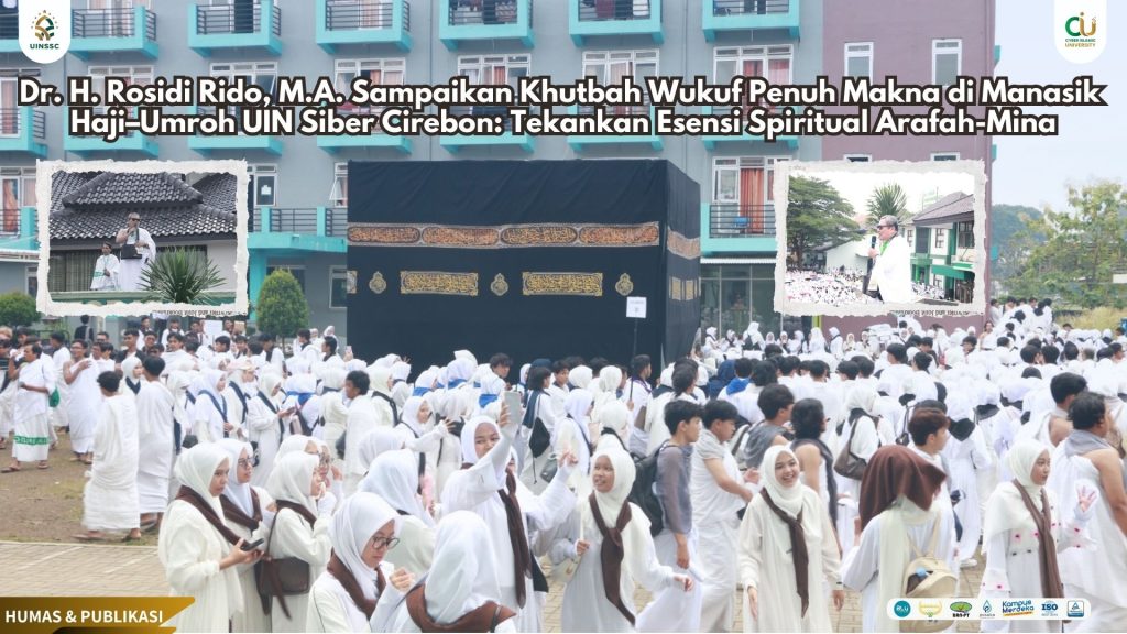 UIN Siber Cirebon – Semangat spiritual menyelimuti pelaksanaan Praktik Manasik Haji–Umroh 2025 yang digelar oleh Ma’had Al Jami’ah Universitas Islam Negeri (UIN) Siber Syekh Nurjati Cirebon, juga dikenal sebagai Cyber Islamic University (CIU). Di tengah ribuan peserta yang memadati area Ma’had dan halaman Rektorat, salah satu momen paling menyentuh adalah ketika Dr. H. Rosidi Rido, M.A., salah satu tutor dan tenaga pendidik di kampus, menyampaikan khutbah wukuf yang penuh makna dan menggugah jiwa.(25/05).