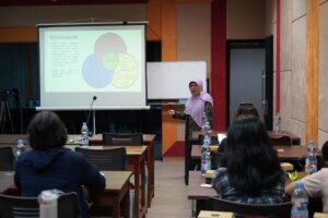 Diskusi yang terjadi usai sesi materi juga menjadi ruang penting pertukaran gagasan, di mana para dosen dan praktisi dapat belajar satu sama lain mengenai pendekatan dan studi kasus yang terjadi di lapangan.