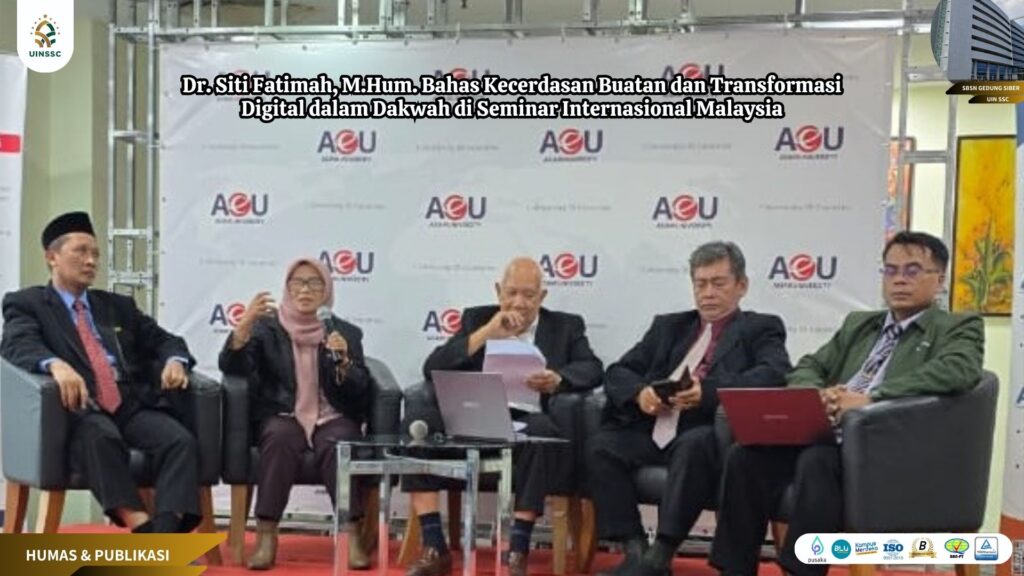 UIN Siber Cirebon (Kuala Lumpur, Malaysia) — Dr. Siti Fatimah, M.Hum., Dekan Fakultas Dakwah dan Komunikasi Islam (FDKI) UIN Siber Syekh Nurjati Cirebon, atau yang dikenal sebagai Cyber Islamic University (CIU), tampil sebagai presenter dalam International Seminar on Artificial Intelligence in Open Flexible and Distance Learning (IS-AI OFDL) 2024 yang diselenggarakan di Asia e University, Malaysia. Dalam seminar yang berlangsung pada Kamis, 10 Oktober 2024 tersebut, Dr. Siti Fatimah mempresentasikan makalah berjudul “Artificial Intelligence and Digital Transformation in Dakwah and Communication Faculty of UIN Siber.”