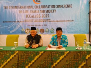 UIN Siber Cirebon (Surakarta) — Dua dosen dari Fakultas Syariah UIN Siber Syekh Nurjati Cirebon, yakni Dr. H. Edy Setyawan, Lc., M.A. (Dekan Fakultas Syariah) dan Achmad Otong Busthomi, Lc., M.Ag., kembali menorehkan prestasi membanggakan di level internasional. Keduanya menjadi pemateri dalam ajang bergengsi The 5th International Collaboration Conference on Law, Sharia and Society (ICCoLaSS 2025) — sebuah forum ilmiah yang mempertemukan para pakar hukum, akademisi, dan peneliti dari berbagai negara. (27/10).
