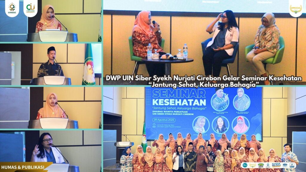 UIN Siber Cirebon – Dharma Wanita Persatuan (DWP) UIN Siber Syekh Nurjati Cirebon sukses menyelenggarakan Seminar Kesehatan bertajuk “Jantung Sehat, Keluarga Bahagia” di auditorium lantai 8 gedung Siber SBSN UIN Siber Syekh Nurjati Cirebon. Acara ini digelar sebagai upaya meningkatkan kesadaran masyarakat, khususnya keluarga, mengenai pentingnya menjaga kesehatan jantung sebagai fondasi kebahagiaan rumah tangga.(28/08).