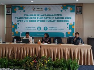 UIN Siber Cirebon – UIN Siber Syekh Nurjati Cirebon melalui LPTK menggelar kegiatan Evaluasi Pelaksanaan PPG Transformatif Plus Batch 1 Tahun 2025 pada Jumat–Sabtu, 24–25 April 2026. Kegiatan bertema “Evaluasi Pelaksanaan PPG Transformatif Plus Batch 1 LPTK UIN Siber Syekh Nurjati Cirebon” ini berlangsung di Hotel Grage Sangkan dan menjadi momentum strategis dalam memperkuat kualitas Pendidikan Profesi Guru (PPG) berbasis transformasi.