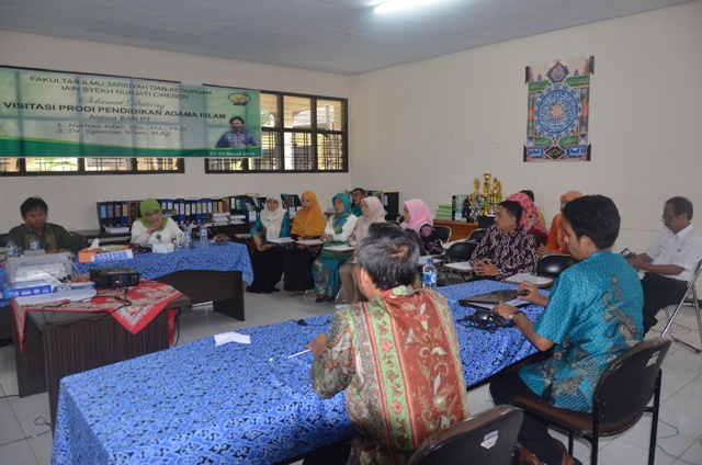 Minggu, 20 Maret 2016 tepatnya pukul 15.00 WIB Tim Assesor BAN-PT kegiatan Visitasi dan Akreditasi Jurusan Pendidikan Agama Islam (PAI) Fakultas Ilmu Tarbiyah dan Keguruan IAIN Syekh Nurjati Cirebon Tahun 2016 telah selesai dilaksanakan. Serangkaian kegiatan Visitasi dan Akreditasi yang dilaksanakan dimulai jam. 07.30 s.d 14.00 WIB, sekarang saatnya Tim Assesor BAN-PT menyampaikan Expose hasil akhir kegiatan Visitasi dan Akreditasi Jurusan PAI FITK Tahun 2016 diforum, yang dihadiri dari Dekan FITK, Wadek I,II,III FITK, Ketua LPM, Tim Gusus Mutu, Dosen serta Staff Jurusan PAI FITK. Dalam hal ini Tim Assesor BAN-PT Nurlena Rifai, Dra., MA., Ph.D dan Syamsun Ni’am, DR., M. Ag menyerahkan berkas berita acara hasil akhir kegiatan Visitasi dan Akreditasi Jurusan PAI Fakultas Ilmu Tarbiyah dan Keguruan Tahun 2016 masing-masing kepada Dekan FITK Dr. Ilman Nafi’a, M. Ag dan Ketua Jurusan PAI FITK Dr. H. Suteja, M. Ag.