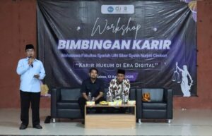 UIN Siber Cirebon — Menjawab tantangan perkembangan zaman dan kebutuhan pasar kerja di era digital, Fakultas Syariah Universitas Islam Negeri (UIN) Siber Syekh Nurjati Cirebon menggelar Workshop Bimbingan Karir bertema “Karir Hukum di Era Digital”, yang berlangsung di Gedung ICC kampus setempat. (12/08).