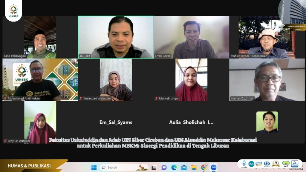 UIN Siber Cirebon – Fakultas Ushuluddin dan Adab Universitas Islam Negeri (UIN) Siber Syekh Nurjati Cirebon, yang dikenal juga sebagai Cyber Islamic University (CIU), terus berinovasi dalam mengembangkan kualitas pendidikan. Meski dalam masa libur, Jurusan Bahasa dan Sastra Arab (BSA) UIN Siber Cirebon tak berhenti bergerak. Baru-baru ini, mereka menyelenggarakan diskusi virtual melalui Zoom Meeting bersama Jurusan BSA UIN Alauddin Makassar untuk membahas kolaborasi perkuliahan berbasis Merdeka Belajar Kampus Merdeka (MBKM).Senin, (16/09/2024).