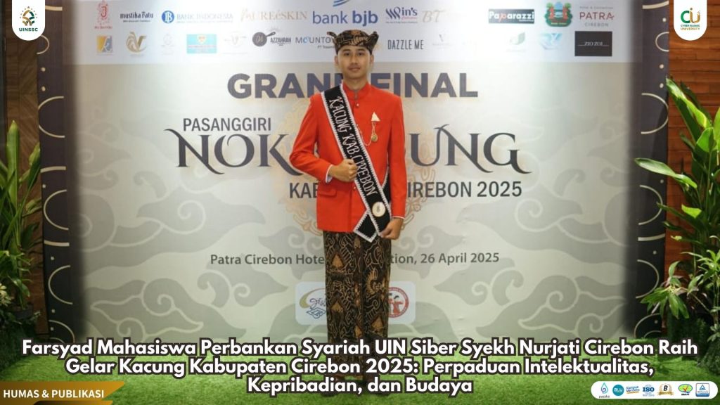 UIN Siber Cirebon — Sosok muda penuh semangat kembali mengharumkan nama UIN Siber Syekh Nurjati Cirebon (Cyber Islamic University). Adalah Farsyad Akbar K., mahasiswa semester 2 Jurusan Perbankan Syariah Fakultas Ekonomi dan Bisnis Islam, yang sukses meraih gelar Kacung Kabupaten Cirebon 2025, mewakili Kecamatan Sumber dalam ajang prestisius Pasanggiri Nok dan Kacung Kabupaten Cirebon Tahun 2025.