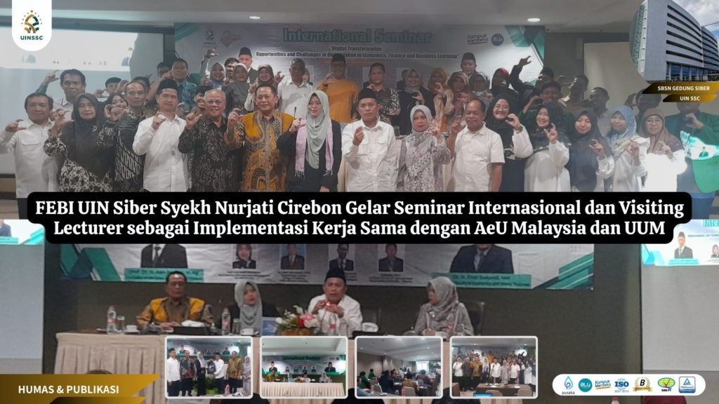 UIN Siber Cirebon – Fakultas Ekonomi dan Bisnis Islam (FEBI) Universitas Islam Negeri (UIN) Siber Syekh Nurjati Cirebon menggelar Seminar Internasional dan Visiting Lecturer sebagai bentuk implementasi kerja sama (MoU) dengan Asia e University (AeU) Malaysia dan Universiti Utara Malaysia (UUM). Kegiatan ini berlangsung pada Senin hingga Selasa, 12-13 Agustus 2024, bertempat di Grage Hotel Cirebon, dengan tema “Transformasi Digital: Peluang dan Tantangan Digitalisasi dalam Pembelajaran Ekonomi, Keuangan, dan Bisnis.”