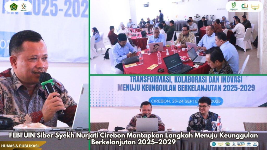 UIN Siber Cirebon — Dalam rangka memperkuat daya saing institusi dan menjawab tantangan pendidikan tinggi di era digital, Fakultas Ekonomi dan Bisnis Islam (FEBI) Universitas Islam Negeri (UIN) Siber Syekh Nurjati Cirebon, yang juga dikenal sebagai Cyber Islamic University (CIU), menyelenggarakan Workshop Strategi Penguatan Daya Saing melalui Transformasi, Kolaborasi, dan Inovasi Menuju Keunggulan Berkelanjutan 2025–2029.