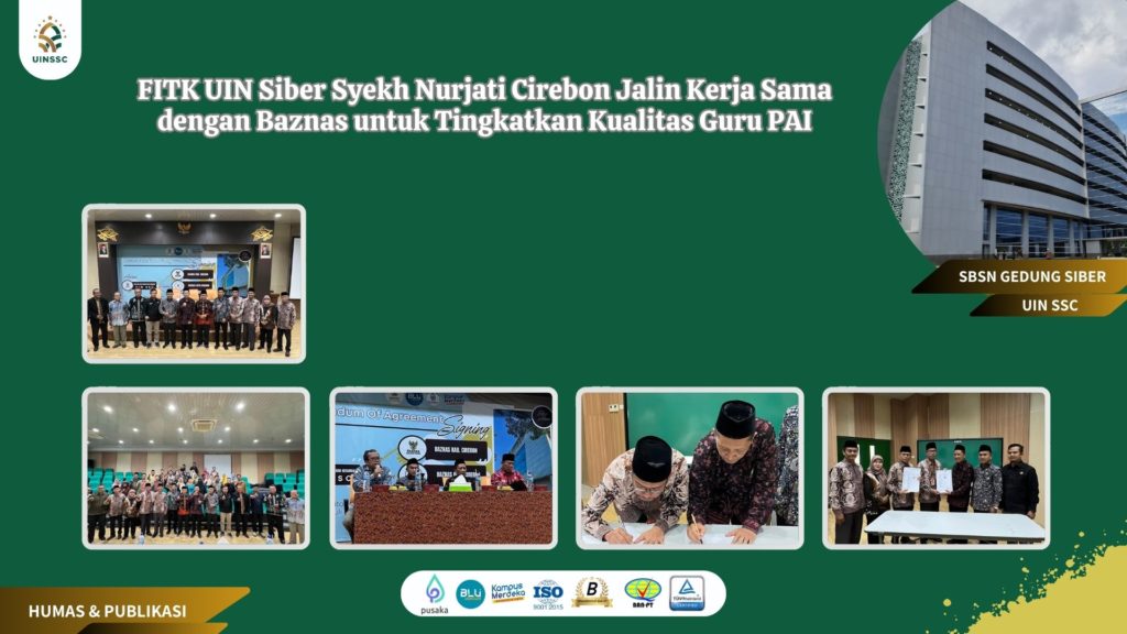 UIN Siber Cirebon – PPG Dalam Jabatan (Daljab) yang diwakili oleh Dekan Fakultas Ilmu Tarbiyah dan Keguruan (FITK) UIN Siber Syekh Nurjati Cirebon, Dr. H. Saifuddin, M.Ag., menandatangani kontrak kerja sama dengan tiga Baznas (Kota Cirebon, Kabupaten Cirebon, dan Kabupaten Indramayu) pada Kamis (18/07/24). Acara yang berlangsung di Gedung Auditorium FITK UIN Siber Syekh Nurjati Cirebon lantai 5 ini bertujuan untuk meningkatkan peran perguruan tinggi dalam peningkatan kualitas sumber daya manusia (SDM).