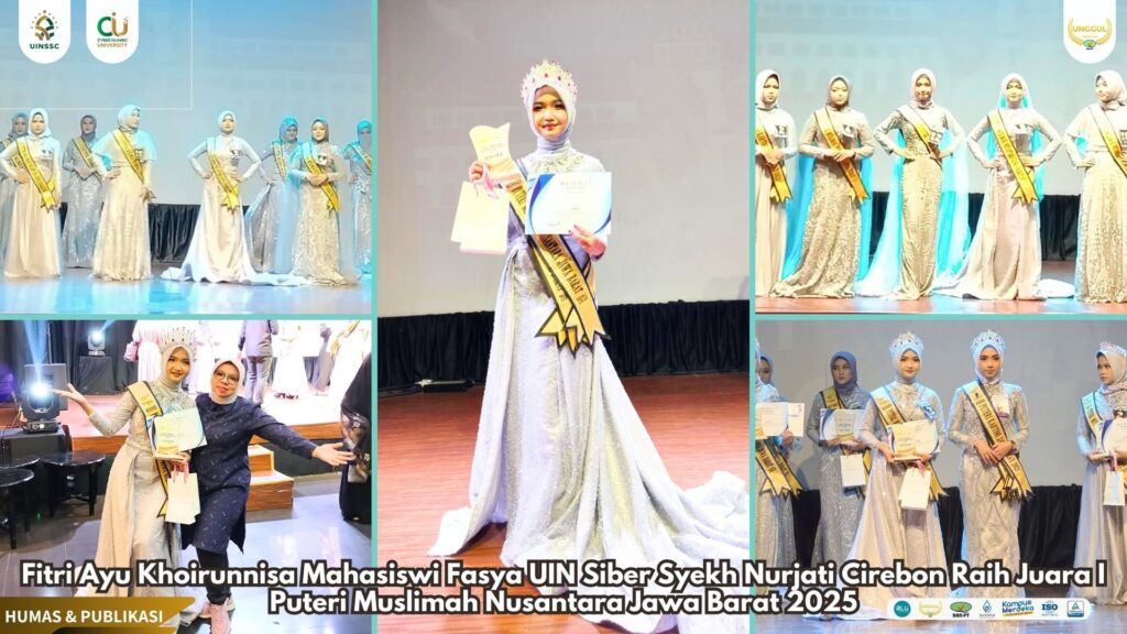 UIN Siber Cirebon (Bandung) – Tepat di momen peringatan Hari Ulang Tahun ke-80 Republik Indonesia, kabar membanggakan datang dari Universitas Islam Negeri (UIN) Siber Syekh Nurjati Cirebon. Fitri Ayu Khoirunnisa, mahasiswi semester 6 dari Jurusan Hukum Keluarga Islam, Fakultas Syariah, berhasil meraih Juara I dalam ajang “Pemilihan Puteri Muslimah Nusantara Jawa Barat 2025”, yang diselenggarakan oleh PT Wincent Simpor Group di Kota Bandung.(17/08).