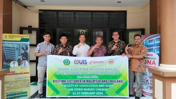 IAIN Cirebon – Dekan Fakultas Ushuludin dan Adab (FUA) Bersama Rektor IAIN Syekh Nurjati Cirebon Prof Dr. H. Aan Jaelani, M.Ag, melepas Wakil Dekan dan dosen Bahasa dan Sastra Arab (BSA) peserta program Arabic Language and Literature Departmen-International Lecture Mobility (AL-ILM) jilid II tahun 2024 di Malaysia dan Thailand. Program yang digagas oleh Jurusan BSA FUA IAIN Syekh Nurjati ini merupakan salah satu dari desain program unggulan yaitu International Mobility Program (IMP). Program AL-ILM Jilid I sukses diselenggarakan pada Mei 2023 lalu di dua kampus Malaysia, yaitu Universiti Islam Antarbangsa Sultan Abdul Halim Mu’adzam Shah (UniSHAMS) di Kedah, dan Al-Madinah International University (MEDIU) Kuala Lumpur. Selasa, (20/02/2024).