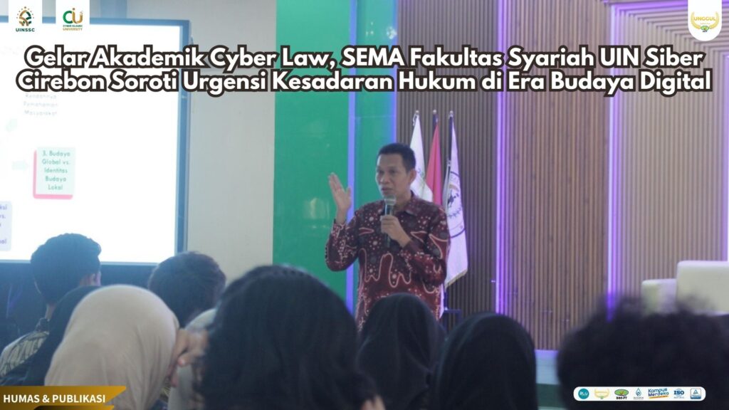UIN Siber Cirebon — Di tengah semakin kompleksnya dinamika interaksi digital, Senat Mahasiswa (SEMA) Fakultas Syariah UIN Siber Syekh Nurjati Cirebon sukses menggelar forum ilmiah bertajuk “Akademik Cyber Law” yang berlangsung pada Jumat, 13 Juni 2025, di Auditorium Lantai 3 Gedung Pascasarjana UIN Siber. Kegiatan ini menghadirkan narasumber utama Dr. Moh Ali, M.Pd.I, Kaprodi PJJ PAI S2 sekaligus pengkaji budaya siber.