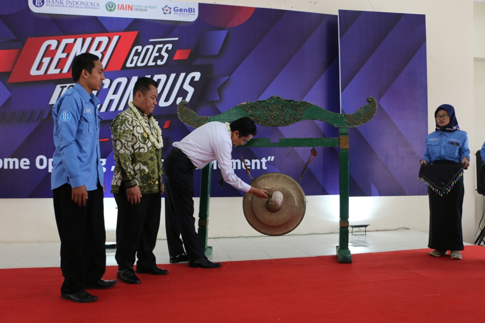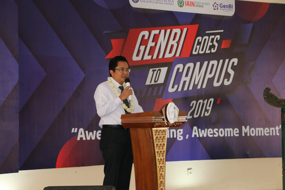 Generasi Baru Indonesia (GenBi) IAIN Syekh Nurjati Cirebon menggelar kegiatan dengan tema Genbi Goes to Campus di Gedung Pascasrjana Lt.3. Kegiatan diikuti mahasiswa yang mengikuti program beasiswa dari Bank Indonesia sekitar 300 peserta. Tujuan diadakan kegiatan ini adalah untuk mengenalkan beasiswa Bank Indonesia kepada mahasiswa calon penerima beasiswa dari Bank Indonesia semester IV dan VI, Sebagai pemateri Abdul Majid Ikram (Pembina GenBi Nasional,Kepala Bank Indonesia), dalam kegiatan kali ini disampaikan tentang kebangsentralan oleh Pembina GenBi serta launching beasiswa Bank Indonesia. Kegiatan dihadiri Dr. H. Sumanta Hasyim, M.Pd (Rektor ), Dr. H. Farihin, M.Pd (WarekIII), Dody Dahwana Putra, S.E.I., M.AB (Kasubbag Kemahasiswaan dan Alumni) beserta jajarannya.