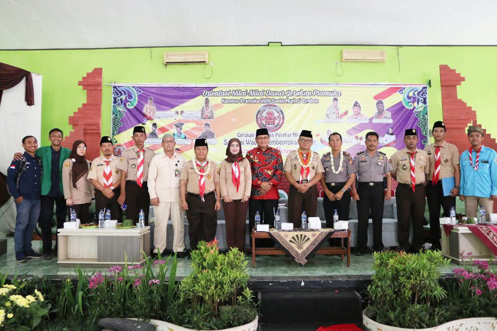 Kesambi, Pramuka Gugus Depan IAIN Syekh Nurjati Cirebon menggelar kegiatan Orientasi Nilai-Nilai Dasar Gerakan Pramuka (ONGDP) 2018 di gedung IAIN Cirebon Center (ICC), Sabtu(08/09). Kegiatan tersebut bertema “Gerakan Pramuka sebagai Perekat NKRI dan Wadah Pembentukan Kader Pemimpin Bangsa” yang berlangsung selama 2 hari dan diikut 922 mahasiswa. Kegiatan dibuka oleh Dr. H. Farihin, M.Pd (Warek III ), kegiatan kali ini menghadirkan Dr. H.M. Afif Anshori, M.Ag. (Pelatih gerakan pramuka tingkat nasional), Dea Angkasa Putri Supardi S.Ip., M.Ap. (Direktur harian umum Fajar Cirebon), Dr. Ir. H. Herman Khaeron, M.Si (Pimpinan Komisi II DPR RI), Dr. H. Ilman Nafi’a, M.Ag (Dekan Fakultas Tarbiyah dan Keguruan F-ITK), Marbawi, S.Sos., M.Si. (Wakil Ketua Kwartir Nasional Gerakan Pramuka), Yuningsih, M.M (Wakil Ketua DPRD Kab. Cirebon) dan Ipda Sukrim (Pihak Kepolisian Cirebon Kota).