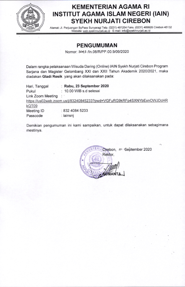 PENGUMUMAN ID DAN PASWORD GLADI RESIK WISUDA ONLINE