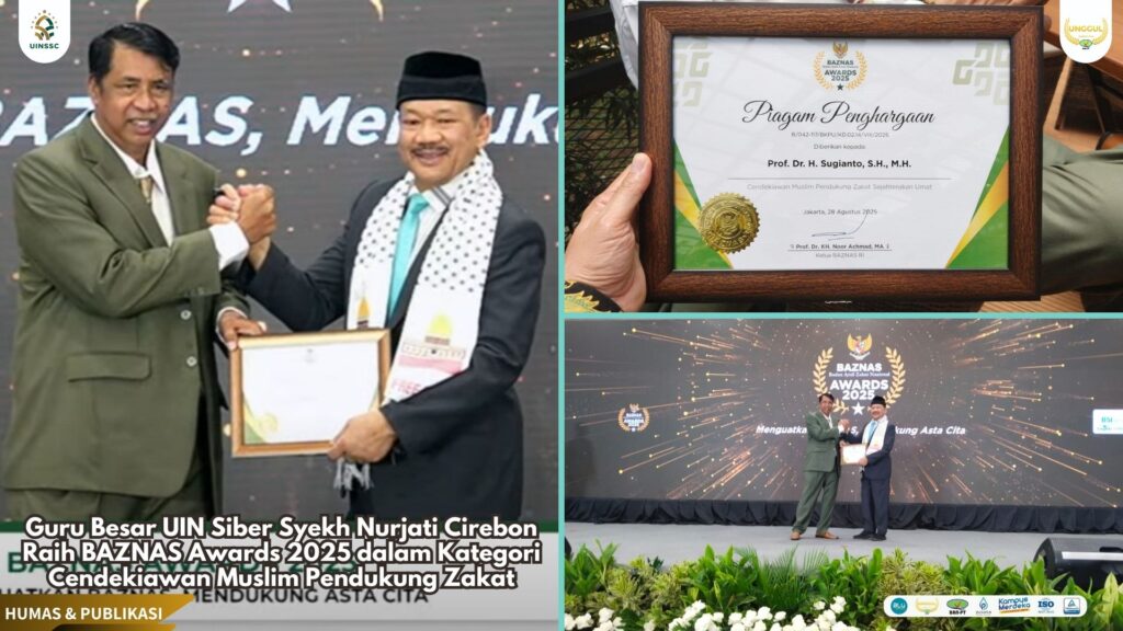 Dalam acara yang digelar di Hotel Mercure Ancol, Jakarta Utara, Kamis (28/8/2025), salah satu tokoh akademisi dari Universitas Islam Negeri (UIN) Siber Syekh Nurjati Cirebon, Prof. Dr. H. Sugiato, S.H., M.H., berhasil meraih penghargaan prestisius BAZNAS Awards 2025. Guru Besar yang juga menjabat sebagai Wakil Direktur Pascasarjana tersebut terpilih dalam kategori Special Award: Cendekiawan Muslim Pendukung Zakat Sejahterakan Umat.
