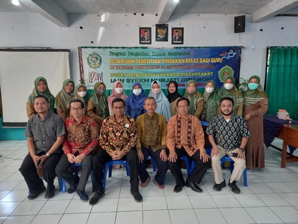Lembaga Penelitian dan Pengabdian Kepada Masyarakat (LP2M) IAIN Syekh Nurjati Cirebon, menyelenggarakan program pengabdian kepada masyarakat dengan acara pendampingan pelatihan penulisan karya ilmian penelitian tindakan kelas bagi guru di yayasan pendidikan Pesantren Al-Mutawally. Dilaksanakan selama dua hari yaitu 12-13 Oktober 2021 dengan 40 peserta dari guru Al-Mutawally. Kegiatan ini dihadiri oleh ketua LP2M Dr. H. Ahmad Yani, M.Ag, Direktur KMA Al-Mutawally KH. Didin Nurul Rosidin, P.hD.