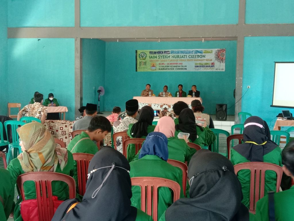 Sementara itu, Camat Talun, Drs H Abadi, M.Si, nampak dengan semangat memberikan orasi sambutannya di hadapan para mahasiswa KKN GM IAIN Syekh Nurjati Cirebon. Abadi dengan lugasnya mengajak para mahasiswa KKN untuk terus berkelanjutan dalam menggulirkan program keagamaan di masyarakat.
