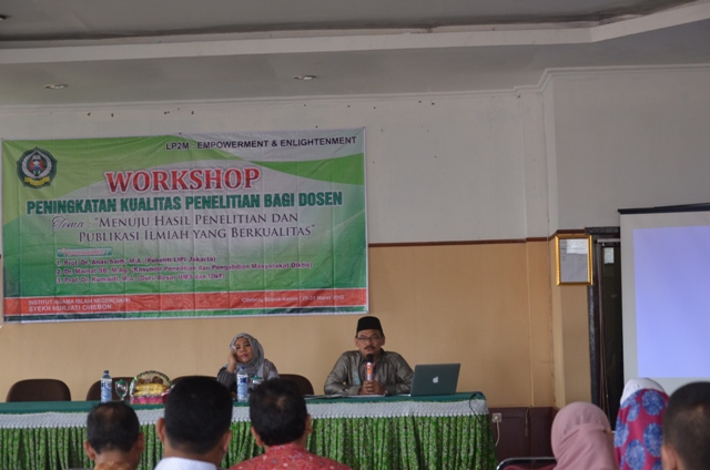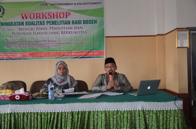 Rabu, 30 Maret 2016 adalah hari ke dua pelaksanaan Workshop Peningkatan Kualitas Penelitian Bagi Dosen di Lingkungan IAIN Syekh Nurjati Cirebon dengan mangangkat tema ” Menuju Hasil Penelitian & Publikasi Ilmiah Yang Berkulitas “. Lembaga Penelitian dan Pengabdian Masyarakat (LPPM) IAIN Syekh Nurjati Cirebon menghadirkan Narasumber pada hari ini Dr. Mamat SB, M. Ag beliau Kasubdit Penelitian dan Pengabdian Masyarakat Diktis.