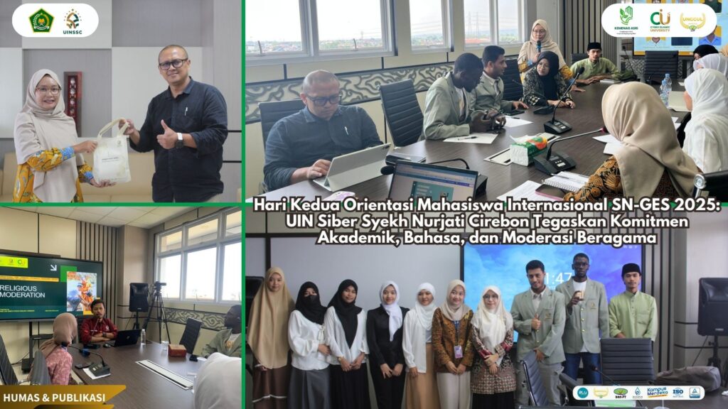 UIN Siber Cirebon – Suasana penuh antusiasme tampak di Main Room International Office, lantai 5 Gedung Siber UIN Siber Syekh Nurjati Cirebon, pada Jumat (12/9/2025). Kegiatan Hari Kedua Orientasi Mahasiswa Internasional Penerima Beasiswa SN-GES 2025 digelar secara tatap muka dan disiarkan langsung melalui kanal YouTube resmi kampus. Agenda ini menjadi wujud nyata dukungan universitas terhadap penguatan kompetensi akademik, pengenalan budaya Indonesia, serta internalisasi nilai moderasi beragama bagi mahasiswa asing.