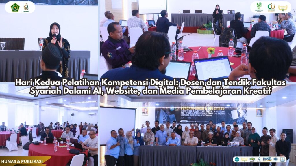 UIN Siber Cirebon — Transformasi digital di lingkungan pendidikan tinggi terus digalakkan. Hal ini tercermin dalam hari kedua kegiatan Pelatihan dan Pendampingan Sertifikasi Kompetensi Digital bagi dosen dan tenaga kependidikan Fakultas Syariah UIN Siber Syekh Nurjati Cirebon, yang digelar pada Selasa (21/10) di Hotel Grand Tryas Cirebon.