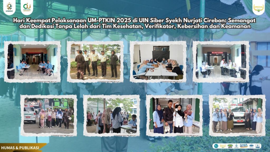 UIN Siber Cirebon — Pelaksanaan Ujian Masuk Perguruan Tinggi Keagamaan Islam Negeri (UM-PTKIN) 2025 di Panitia Lokal (Panlok) dan Titik Lokasi Universitas Islam Negeri (UIN) Siber Syekh Nurjati Cirebon (Cyber Islamic University/ CIU) memasuki hari keempat, Sabtu (14/6/2025). Suasana tampak berjalan kondusif, nyaman, dan penuh kekeluargaan, tak lepas dari peran penting tim Kesehatan, Verifikator, dan Keamanan yang tetap melayani para peserta ujian dengan ramah, maksimal, dan sepenuh hati.