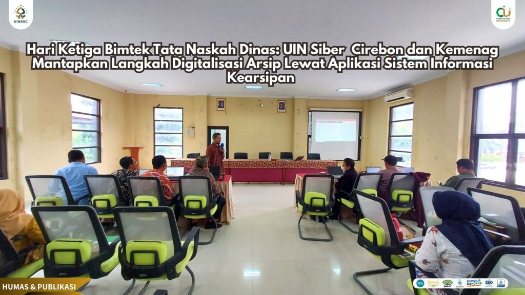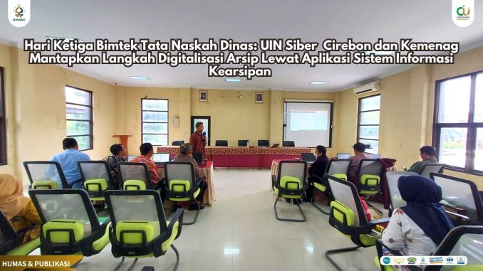 UIN Siber Cirebon (Kemenag Kab. Cirebon) — Komitmen menuju tata kelola administrasi modern berbasis digital semakin nyata di lingkungan Kementerian Agama dan perguruan tinggi keagamaan. Hal ini tergambar jelas dalam hari ketiga pelaksanaan Bimbingan Teknis (Bimtek) Tata Naskah Dinas, yang secara khusus menghadirkan materi pengelolaan arsip digital menggunakan Aplikasi Sistem Informasi Kearsipan.