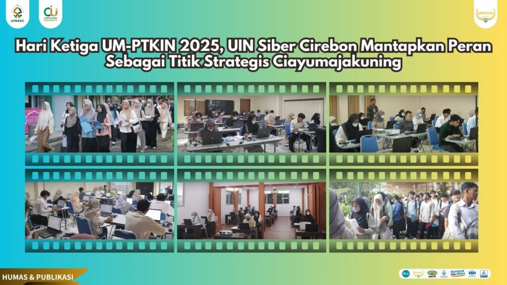 UIN Siber Cirebon — Pelaksanaan hari ketiga Ujian Masuk Perguruan Tinggi Keagamaan Islam Negeri (UM-PTKIN) 2025 melalui Sistem Seleksi Elektronik (SSE) di titik lokasi Universitas Islam Negeri (UIN) Siber Syekh Nurjati Cirebon berjalan dengan lancar dan tertib. Sebagai salah satu titik strategis di wilayah Ciayumajakuning (Cirebon, Indramayu, Majalengka, dan Kuningan), UIN Siber Cirebon kembali menunjukkan kapasitasnya sebagai kampus unggulan yang dikenal sebagai Cyber Islamic University (CIU).