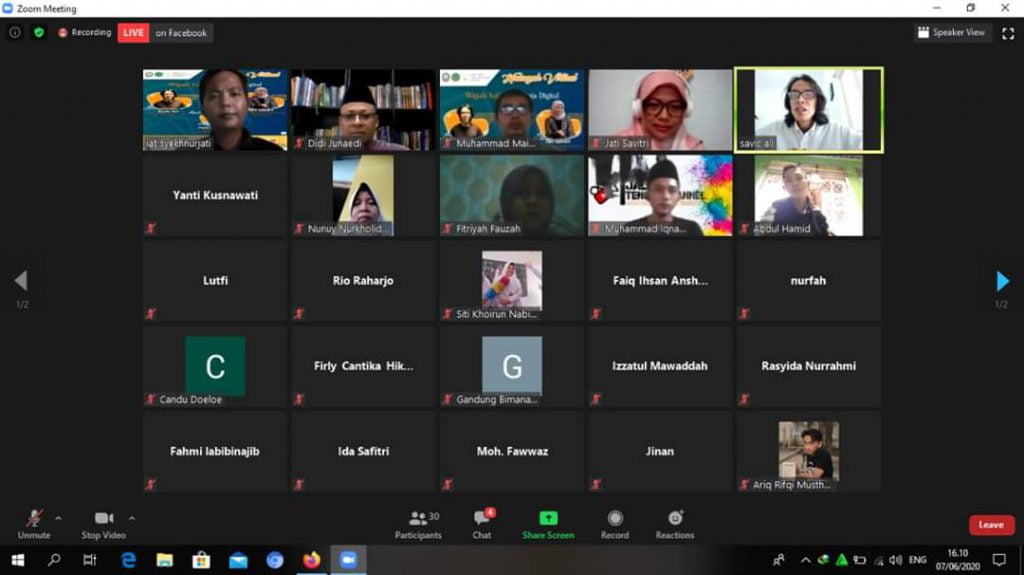 Acara yang berlangsung via Zoom Meeting itu bertemakan “Wajah Islam di Dunia Digital”. Minggu, (7/6/2020)