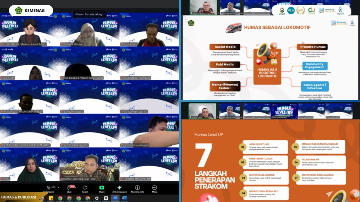 UIN Siber Cirebon (Kemenag) — Kementerian Agama RI kembali menggelar program penguatan kapasitas kehumasan melalui Humas Level Up (Pertemuan 2) yang dilaksanakan secara daring melalui platform MOOC Pintar Kemenag, Jumat (27/2/2026). Kegiatan ini diikuti oleh seluruh Pranata Humas (Prahum) di satuan kerja Kementerian Agama se-Indonesia.