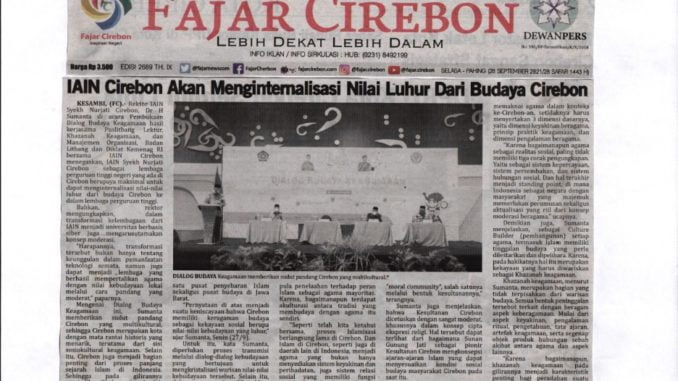 IAIN Cirebon Akan Menginternalisasi Nilai Luhur dari Budaya Cirebon (Fajar Cirebon/28 September 2021) 15 Oktober 2021 arifin Kliping Digital 0 IAIN Cirebon Akan Menginternalisasi Nilai Luhur dari Budaya Cirebon