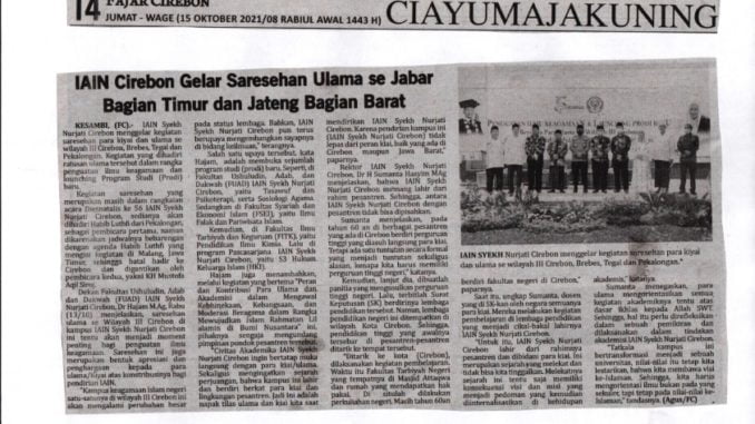 IAIN Cirebon Gelar Sarasehan Ulama Se Jabar bagian Timur dan Jateng Bagian Barat (Rakyat Cirebon/15 Oktober 2021) 15 Oktober 2021 arifin Kliping Digital 0 IAIN Cirebon Gelar Sarasehan Ulama Se Jabar bagian Timur dan Jateng Bagian Barat