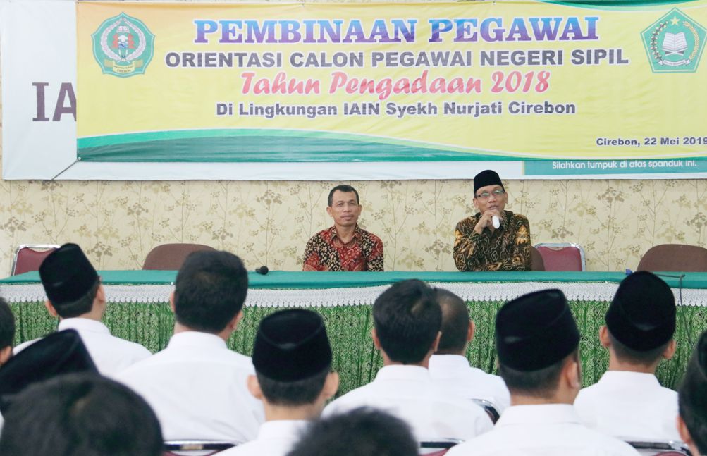 Dalam rangka mempersipakan tenaga pendidik dan kependidikan, IAIN Syekh Nurjati Cirebon melakukan pembinaan bagi Calon Pegawai Negeri Sipil (CPNS) tahun pengadaan 2018 dilingkungan IAIN Syekh Nurjati Cirebon, selama tiga hari, yakni Rabu hingga Jumat, 24 Mei 2019. Pembinaan ini diikuti 72 orang CPNS dari tenaga pendidik dan kependidikan, Rektor IAIN Syekh Nurjati Cirebon Dr. H. Sumanta, M.Ag menyampaikan, Formasi CPNS di Lingkungan IAIN Cirebon mewakili dua unsur yakni keilmuan agama dan umum, yang memiliki distingsi yang bergulir di masyarakat. “ini merupakan salah satu syarat Orientasi IAIN menjadi UIN dengan menyiapkan sofware yakni para Dosen dengan kompetensinya serta lahan baru untuk perluasan kampus.” Dalam pembinaan tersebut CPNS di bekali dengan materi kedisiplinan oleh Kepala Biro AUAK Drs. Subarja, M.Pd serta sertifkasi dosen oleh Dr. Hajam, M,Ag (Dekan Fakultas Ushuludin Adab dan Dakwah) dan penulisan jurnal terakreditasi Nasional dan Internasional oleh Dr. Aan Zaelani, MAg (Dekan Fukltas Syariah dan Ekonomi Islam). Rabu (22-24/05)