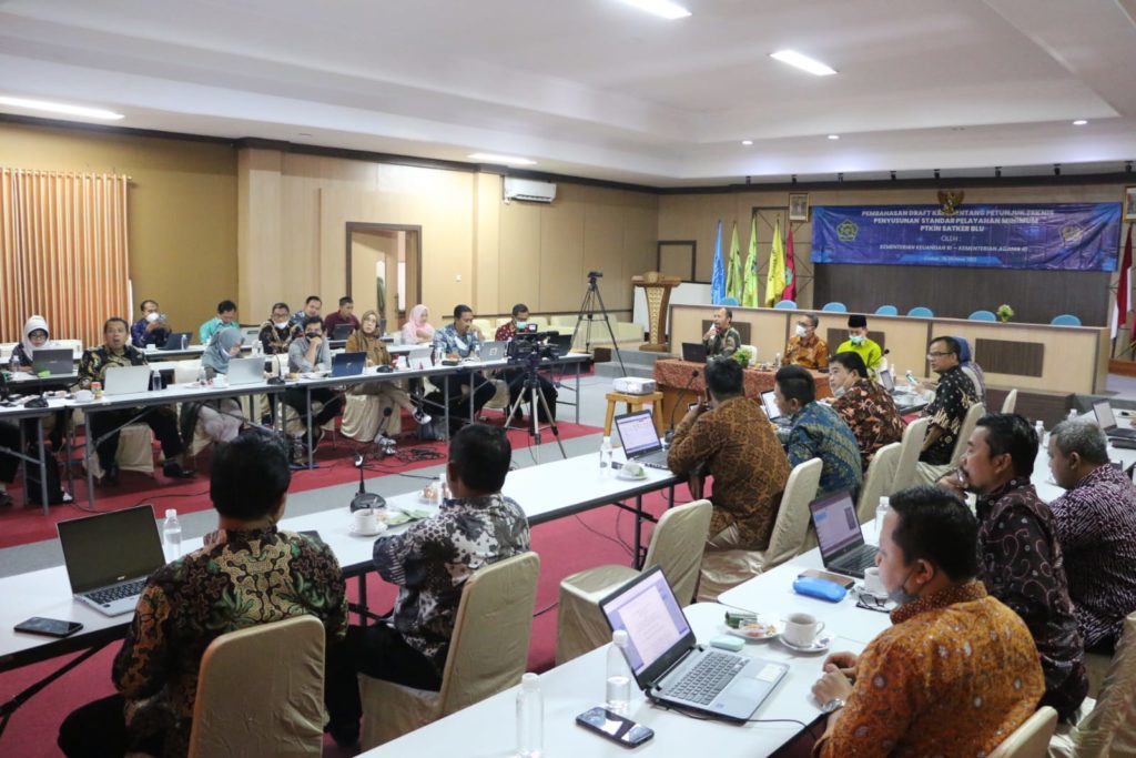 Kegitan Penyusunan Draft KMA tentang Petunjuk Teknis Penyusunan Standar Pelayanan Minimum PTKIN Satker BLU Kementerian Agama RI oleh Kementerian Keuangan RI dan Kementerian Agama RI bertempat di aula gedung pascasarjana IAIN Syekh Nurjati Cirebon lantai 4.