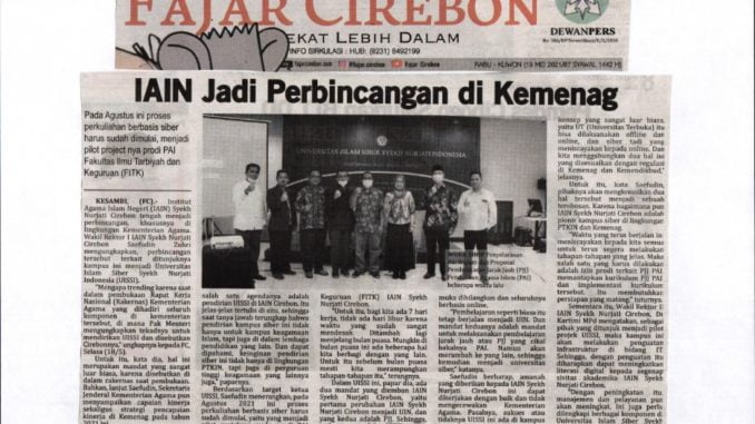 IAIN Jadi Perbincangan di Kemenag (Fajar Cirebon/ 19 Mei 2021) 12 Oktober 2021 arifin Kliping Digital 0 IAIN Jadi Perbincangan di Kemenag